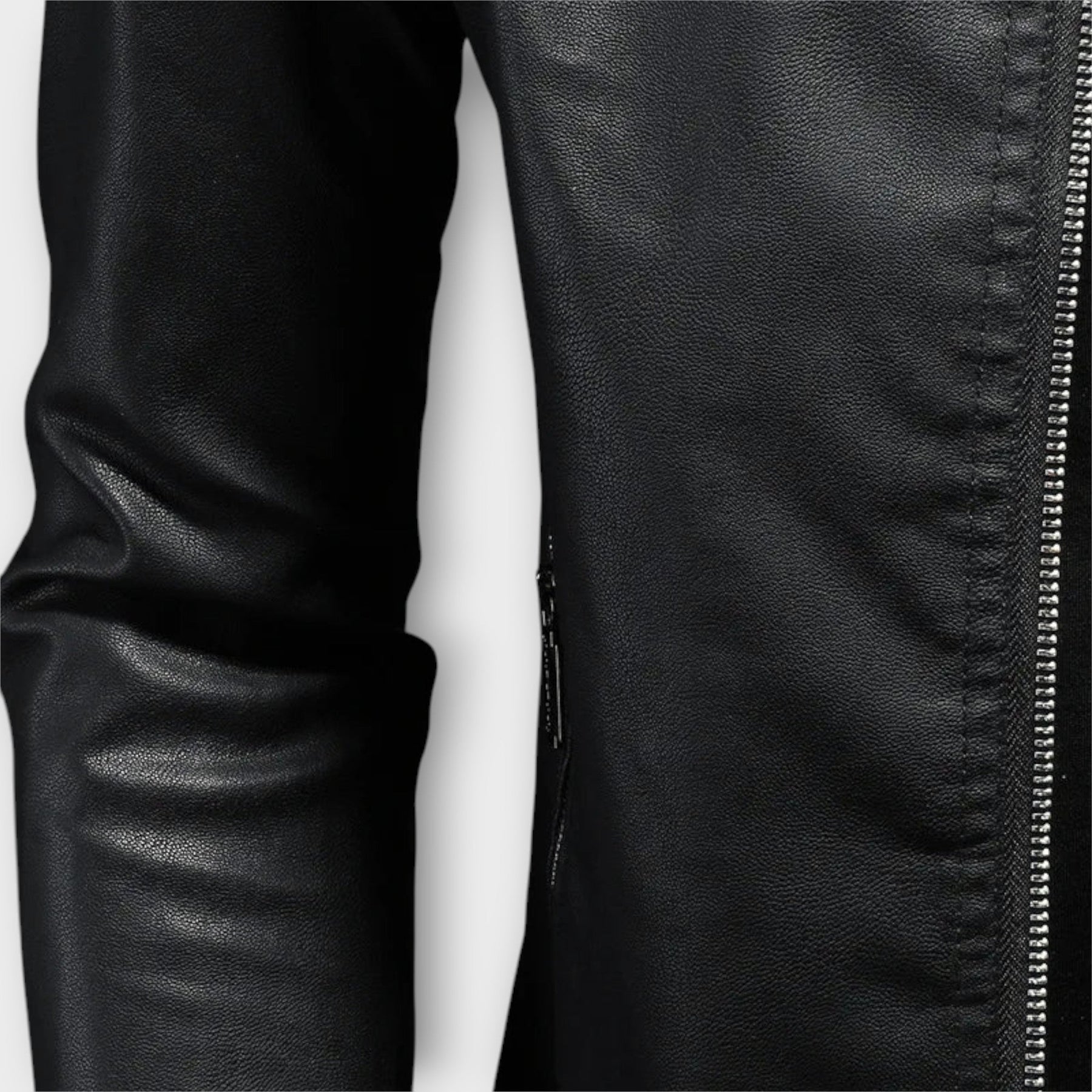 La Giacca di Pelle con Collo Alto è realizzata per uomini che desiderano un look elegante e maschile con dettagli raffinati. Realizzata in pelle di alta qualità, offre una vestibilità strutturata e un collo alto moderno che aggiunge un tocco elevato—perfetta per le notti in città, la sofisticazione casual o da sovrapporre a outfit quotidiani.