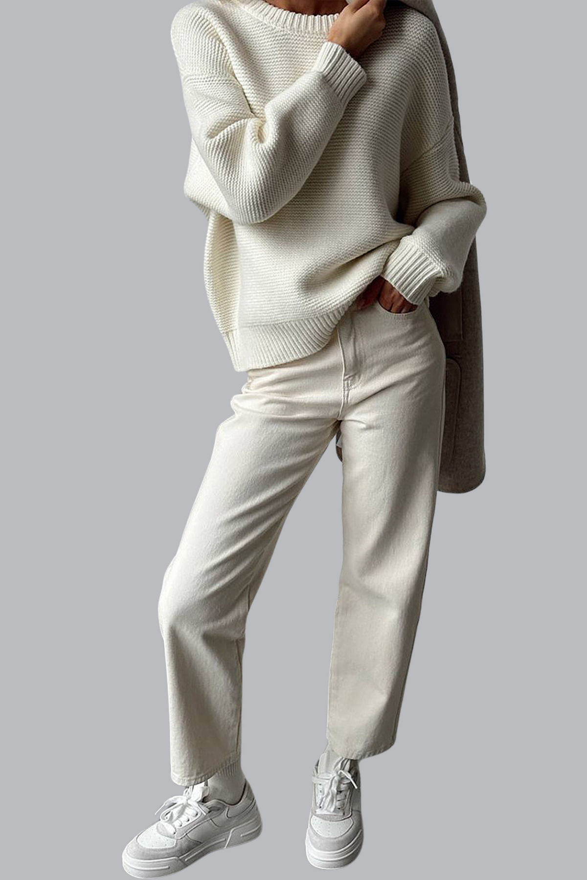 La sua tonalità crema rilassante lo rende un capo versatile, facile da abbinare sia a look neutri che più colorati, perfetto per uno stile chic e casual.